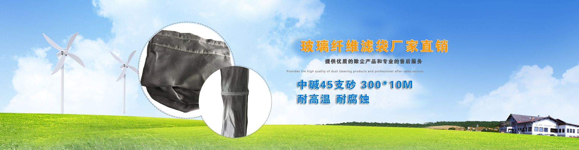 公司主營無堿、中堿玻纖濾袋,PTFE浸漬膨體覆膜(水泥廠窯頭,窯尾專用),無紡高溫、